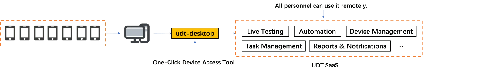 UDT (Unified Device Toolkit) is a SaaS+PaaS device collaboration platform combining: