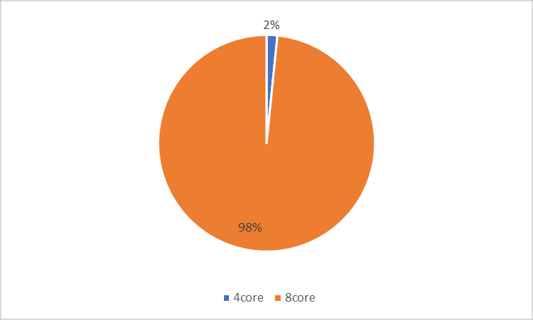 In 2021, the configuration of mainstream models in the Android TOP 500 steadily improved. The share of 8-core CPU models increased further, rising from 96.3% last year to 98.4%. In contrast, non-8-core devices accounted for a combined total of only 1.6%. Mobile core counts have stabilized at eight, with no trend toward further increases.